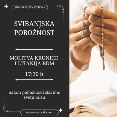 Kroz mjesec svibanj nema jutarnjih misa. Svibanjska pobožnost, molitva krunice i litanija BDM počinje u 17 i 30, a odmah nakon pobožnosti slavimo svetu misu.